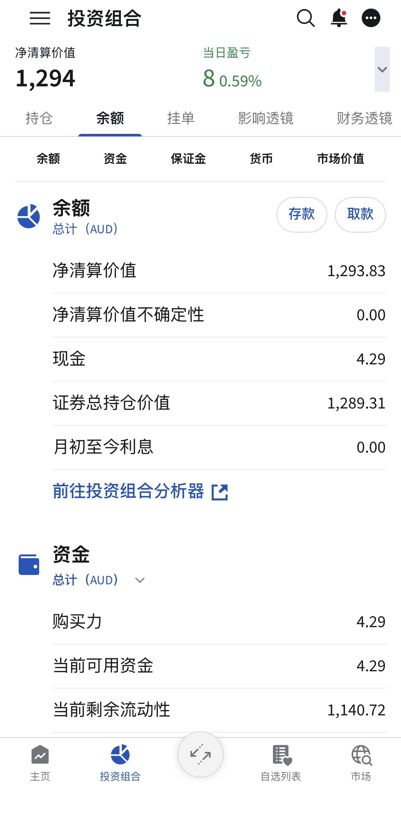 - 当日盈亏:+8 AUD(约 +0.59%)