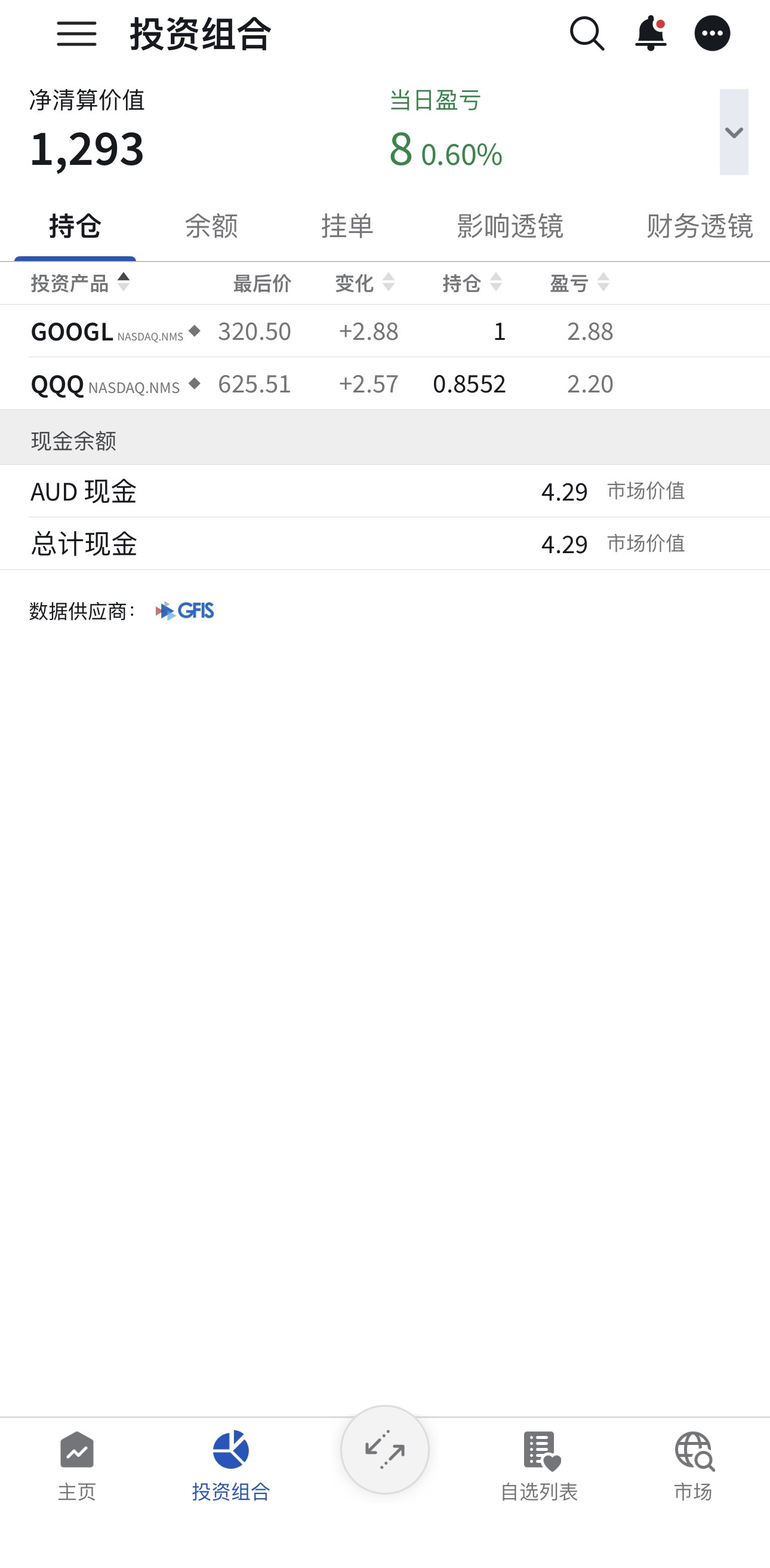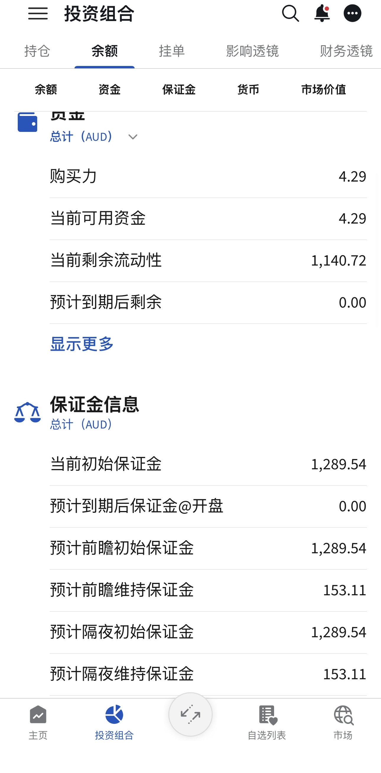 - 账户现金:4.29 AUD