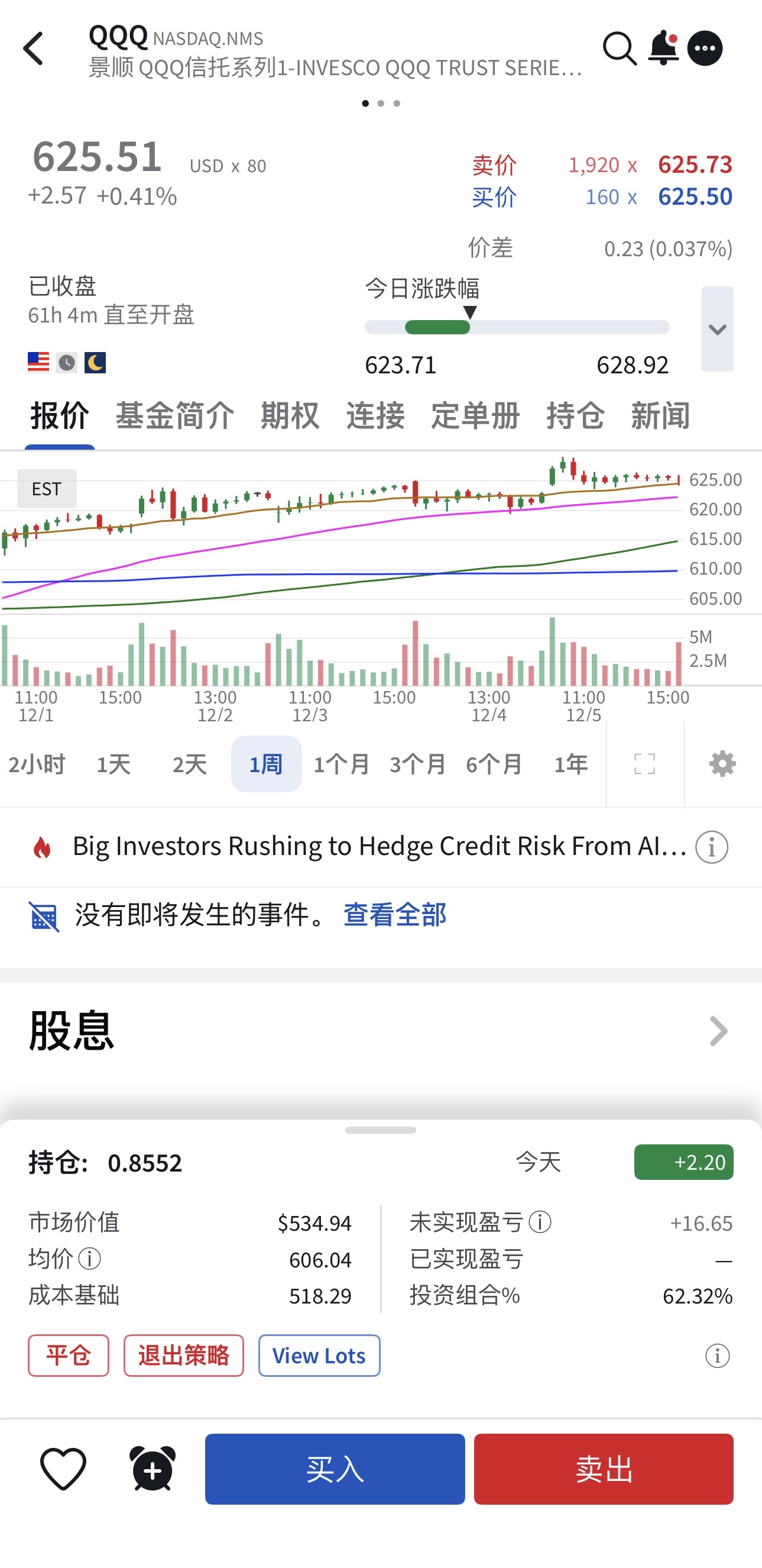 - QQQ 持仓增加到 0.8552 股,市值约 534.94 USD;