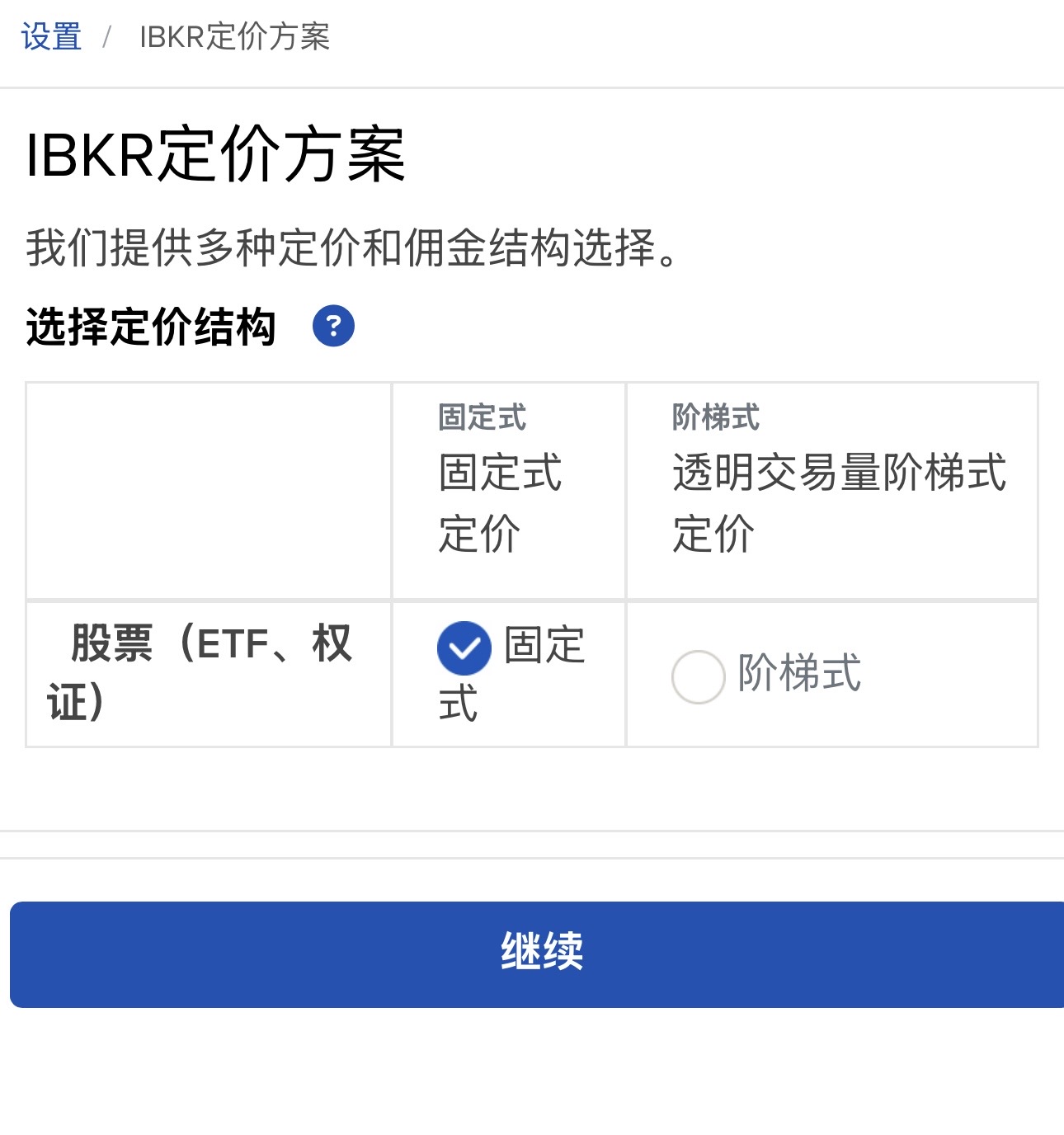 一开始 IBKR 默认的「固定式定价」,